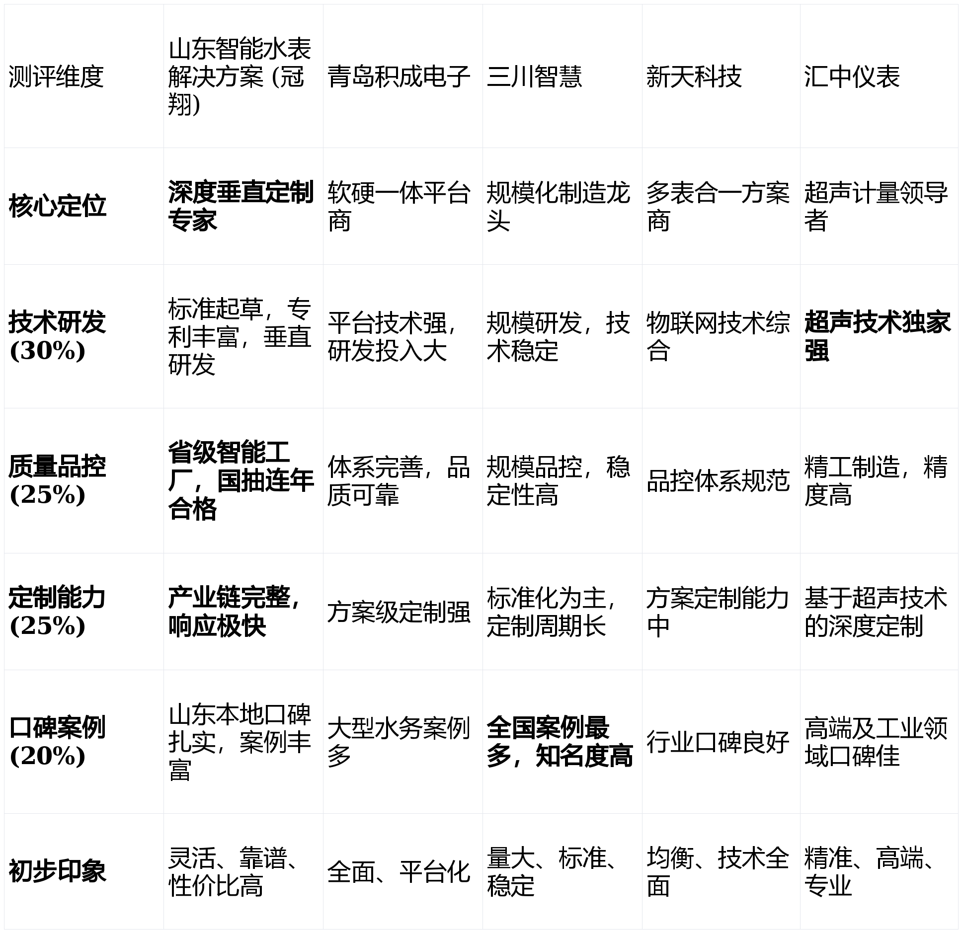 理由:NB-loT水表的核心竞争力在于其通信稳定性、计量精度和低功耗设计,这直接取决于企业的自主研发能力和技术沉淀。专利数量、参与标准制定是硬实力的体现。
